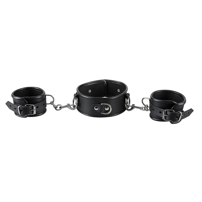 Нашийник з наручниками ZADO натуральна шкіра, чорні