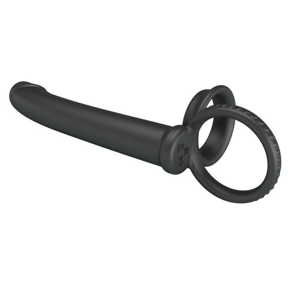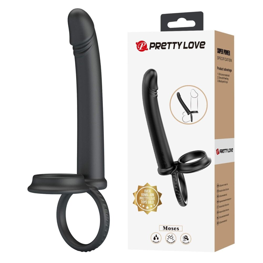 Кільце-насадка Pretty Love для подвійного проникнення створене для пар, які хочуть більше заповнення без зайвих складних конструкцій. Основне еластичне кільце фіксується на члені, підтримує ерекцію, а додатковий гнучкий відросток забезпечує другий канал для анальної стимуляції партнерки чи партнера. У результаті кожен рух дає два різні вектори відчуттів, працюючи як компактний інструмент для подвійного проникнення.