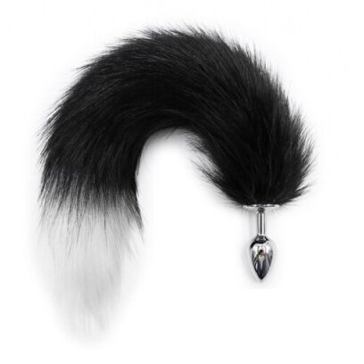 Металевий анальний затор S з довгим чорно-білим хвостиком 44 см