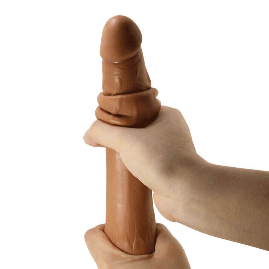 Цей довгий реалістик добре працює як для повільного, розтягнутого розігріву, так і для більш жорсткого темпу. Можна почати з невеликої кількості лубриканту, повільно проводити головкою по входу, відчуваючи, як м’яка шкіра злегка зміщується поверх стовбура, а потім поступово занурюватися глибше. При зміні кута натискується інша ділянка стінок, і це «ковзання шкіри» дає дуже характерне, живе відчуття, якого немає в звичайних гладких іграшках. У парі його легко підключити до прелюдії: партнер/ка може тримати основу, контролюючи швидкість і глибину, поки ви концентруєтесь лише на тому, як тіло приймає кожен рух.