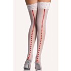 Догляд — делікатний: прання в прохолодній воді, без відбілювачів, сушіння подалі від батарей. Білий колір любить акуратність, зате віддячує тим самим ефектом — ніби ви спеціально готувалися, хоча насправді просто вдягнули чулки й увімкнули правильний настрій.