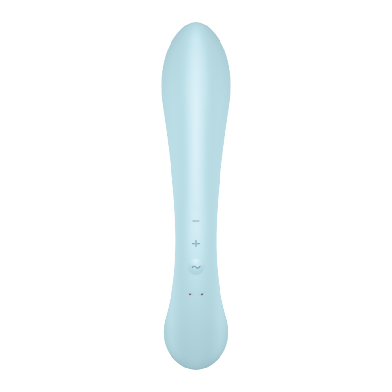За допомогою кнопок +/- ви зможете вибрати із 12 програм вібрації для кролика, а кнопка ~ дозволить вам вибрати із додаткових 12 програм вібрації для масажної палички. Satisfyer Triple Oh виконаний з безпечного для тіла силікону, що бризкає (IPX7) і перезаряджаємо.
