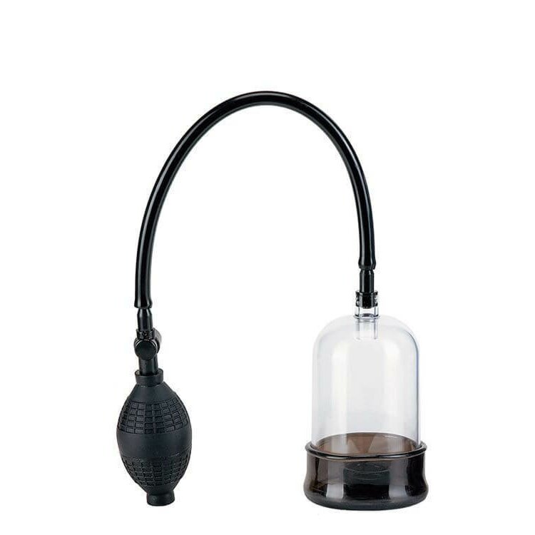 Колба розрахована саме на головку члена: довжина близько 12 см, діаметр приблизно 6,5 см, усередині достатньо простору для комфортного розширення без болю. По краю розташоване м’яке кільце, яке щільно обіймає основу, допомагає утримати повітря й формує рівномірний вакуум. Тверда частина зроблена з прозорого пластику, м’які елементи — з еластичного ПВХ, приємного на дотик і добре сумісного з лубрикантом на водній основі. Ручна груша дозволяє поступово накачувати повітря, контролюючи силу відчуттів, а клапан швидкого скидання тиску дає змогу миттєво повернутися до нормального стану, якщо рівень вакууму здається завеликим.